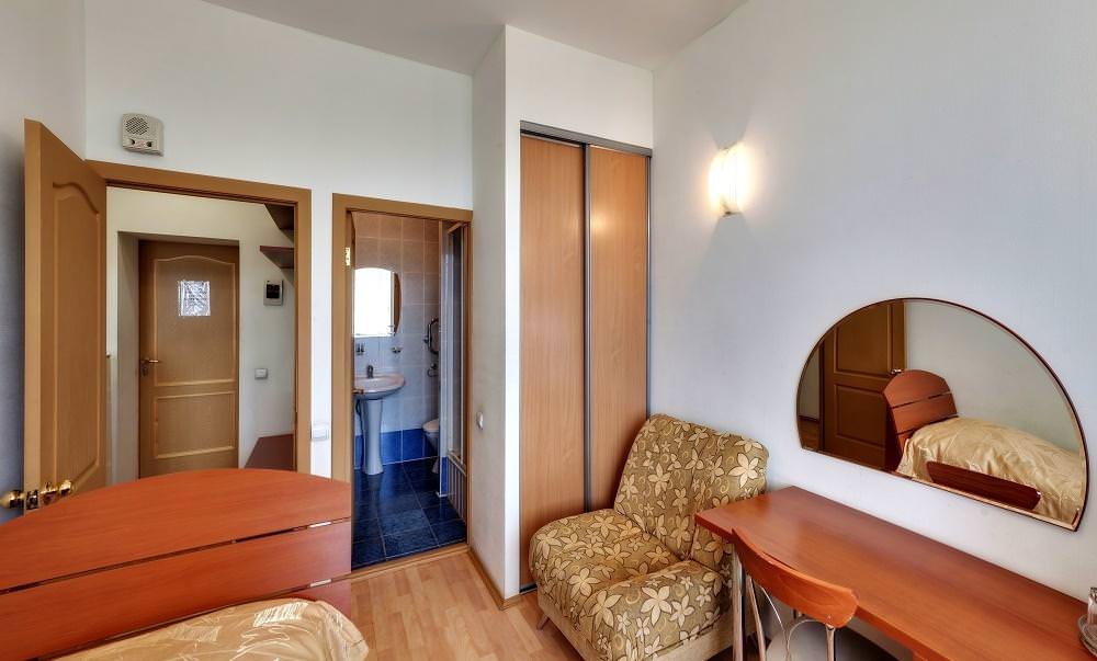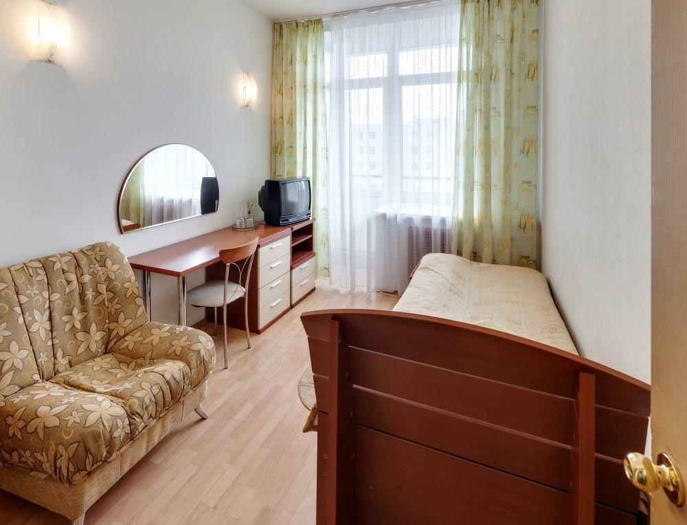 Койко-место в 2-комнатном номере улучшенной комфортности. В номере: душ и туалет. Номера располагается на 4, 6 и 7 этажах, есть лифт.