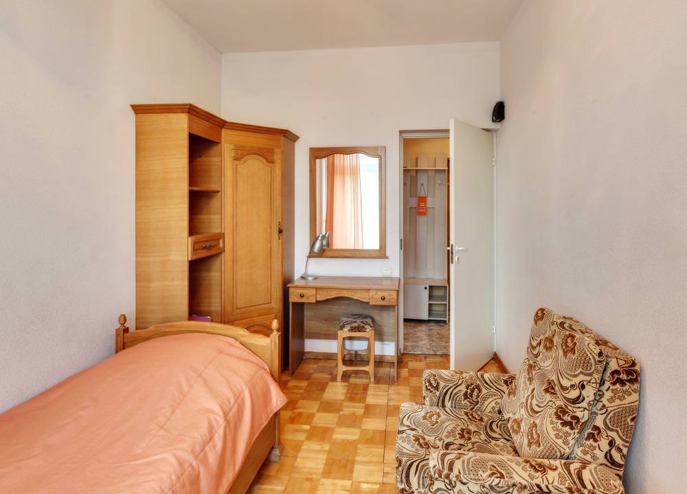 Койко-место в стандартном 2-комнатном номере с санузлом. Номера располагаются на 3, 4 или 5 этажах, есть лифт.